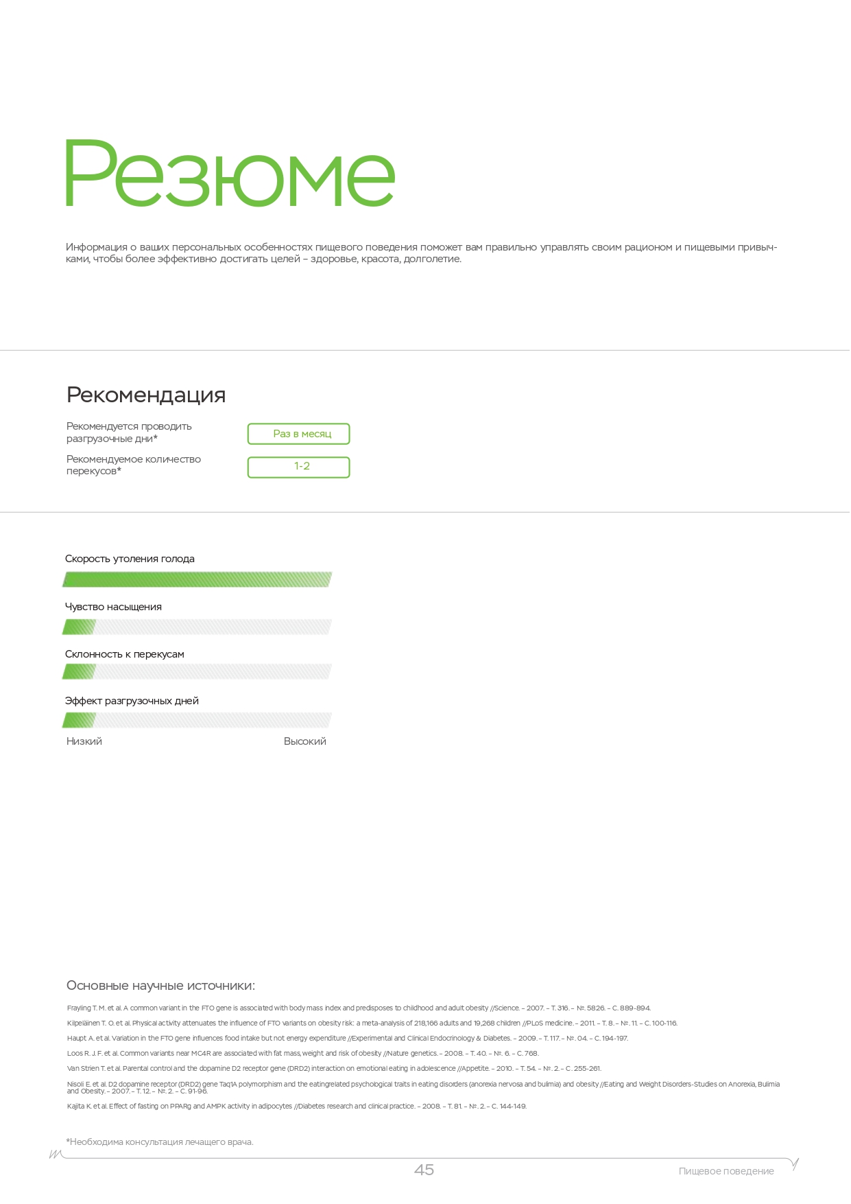 Помните, что помимо физических нагрузок, большую роль играет питание. Вы также можете пройти ДНК-тест на диету, который покажет, каких веществ не хватает в организме, какие организм усваивает лучше, а какие хуже и многое другое.